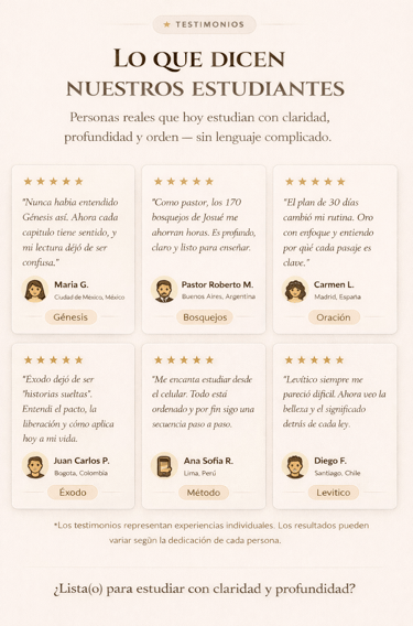 Queremos que miles de personas tengan acceso a este estudio sin barreras. El bajo precio no refleja baja calidad, sino una misión: facilitar el aprendizaje bíblico a todo cristiano comprometido. Más de 4.000 personas ya han confiado en nosotros.
